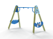 Качели состоят из четырех деревянных столбов, крепежных фанерных накладок и перекладины под один подвес.