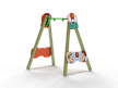 Качели состоят из четырех деревянных столбов, крепежных фанерных накладок в баскетбольном стиле с художественным оформлением и перекладины под один подвес.