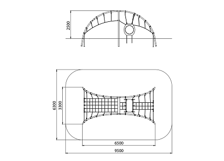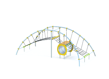 Металлические элементы каркаса комплекса выполнены из стали с оцинкованным покрытием, с антивандальными и безопасными соединениями между собой. Оцинковка металла производится методом электрохимической гальванизации. Сетки и канаты изготовлены из многожильного армированного износостойкого каната. Стенки выполнены из экструдированного высокомолекулярного полиэтилена, стенки тунеля выполнены из HPL пластика. Туннельные сегменты выполнены из высокопрочного пластика.