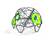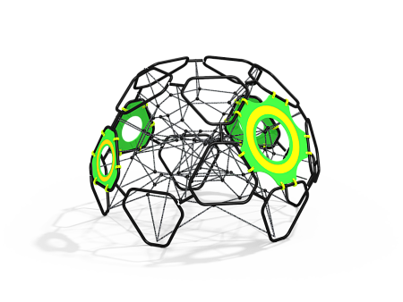 Комплекс выполнен в виде комбинации металлических элементов из стали, окрашенных порошковой полимерной краской, в собранном виде образующих форму треугольной сферы, в полости котоой крепится трехмерная сетка. Сетка изготовлена из многожильного армированного износостойкого каната. Стенки с круглыми лазами выполнены из экструдированного высокомолекулярного полиэтилена.