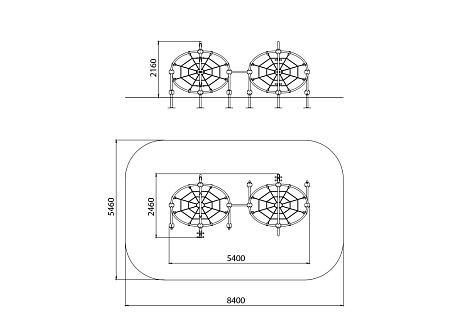 Комплекс выполнен в виде комбинации сеток, рукохода и металлических элементов из стали с оцинкованным покрытием, с антивандальными и безопасными соединениями между собой. Каркас комплекса в собранном виде представляет собой форму зеркально отраженных двойных орбит. Оцинковка металла производится методом электрохимической гальванизации. Сетки изготовлены из многожильного армированного износостойкого каната.