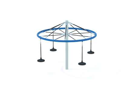 Карусель веревочная состоит из металлического каркаса, окрашенного порошковой полимерной краской, прорезиненного кольца, канатных стяжек и круглых подвесных сидений. Канаты изготовлены из многожильного армированного износостойкого каната..
