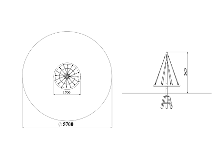 Карусель веревочная состоит из металлического каркаса из стали с оцинкованным покрытием, с канатной оплеткой и канатного обвеса. Канаты изготовлены из многожильного армированного износостойкого каната. Оцинковка металла производится методом электрохимической гальванизации.
