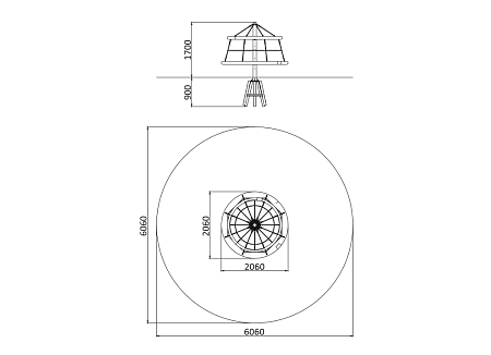 Карусель веревочная состоит из металлического каркаса из стали с оцинкованным покрытием, с канатной оплеткой и канатного обвеса. Канаты изготовлены из многожильного армированного износостойкого каната. Оцинковка металла производится методом электрохимической гальванизации.