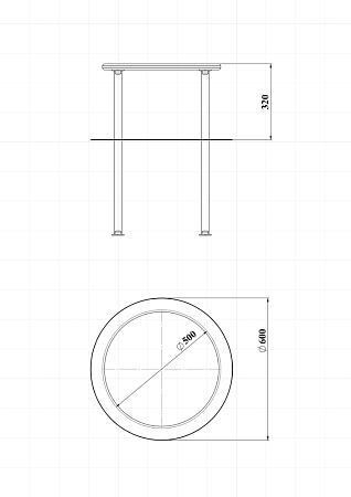 Столик выполнен из двух металлических ножек и круглой фанерной столешницы.