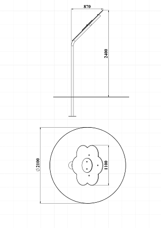 Козырек выполнен из металлической стойки и фанерного навеса в виде ромашки с декоративной фанерной накладкой.
