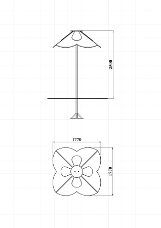 Козырек выполнен в форме ромашки из металлического каркаса с фанерными "лепестками" и декоративными фанернными накладками.