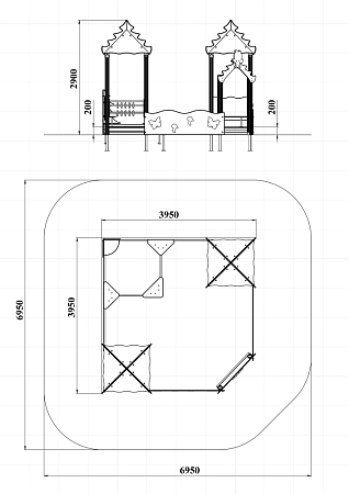 | Ограждение песочницы | 2шт. | Выполнено из влагостойкой фанеры марки ФСФ толщиной 21 мм. |
