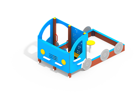 Комплекс скомпонован в форме грузовика, где спереди расположена кабина, а кузов выполнен в виде песочницы. Детали грузовика изготовлены из HPL пластика, тщательно отшлифованного бруса и металлических элементов из стали с оцинкованным покрытием. Оцинковка металла производится методом электрохимической гальванизации. Все материалы, используемые в комплексе, закупаются у лучших европейских производителей, что гарантирует высокие стандарты качества.
