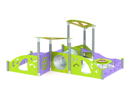 Песочница состоят из столбов выполненных из древесно-полимерного композита (ДПК) диаметром 125 мм, имеют профиль с канавками. Все металлические элементы выполнены из стали с оцинкованным покрытием, с антивандальными и безопасными соединениями. Различных эелементов выполненых из HDPE пластика.