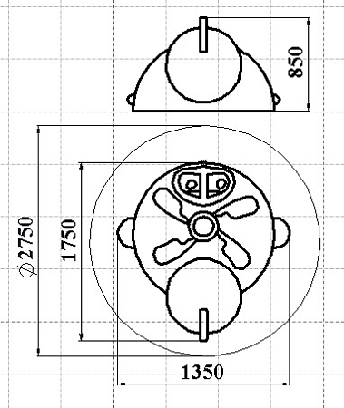 Вертолет представляет собой конструкцию основой, которой является цельный каркас в виде двух полусфер разного диаметра, большая (диаметром 1350 мм) из которых является корпусом вертолета, малая (диаметром 800 мм) – хвостом вертолета. Каркас изготовлен на основе композитных материалов. По всей площади каркас покрыт слоем цветной искусственной каучуковой TPV крошкой, образуя форму и расцветку вертолета.