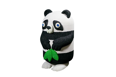 Панда представляет собой конструкцию, основой которой является бетонная модель, по всей площади покрытая слоем цветной искусственной каучуковой TPV крошки, образуя форму и расцветку панды.