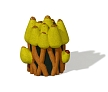 Опята выполнены в виде конструкции, состоящей из основы и пучка шляпок гриба. Основа - бетонная модель по всей площади покрытая слоем цветной искусственной каучуковой TPV крошкой. Шляпки - полнотелый элемент из искусственной каучуковой TPV крошки.