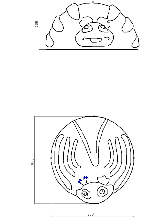 Листогрыз представляет собой конструкцию основой, которой является цельный каркас в виде полусферы диаметром 800 мм. Каркас изготовлен на основе композитных материалов. По всей площади каркас покрыт слоем цветной искусственной каучуковой TPV крошкой, образуя рисунок и форму листогрыза.