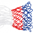 Предлагается сетка для баскетбола, выполненная из полипропилена. Цвет — российский триколор. Диаметр составляет 450 мм. Нити имеют толщину 4,5 мм. Подходит для использования на играх и тренировках в детских учреждениях.