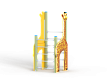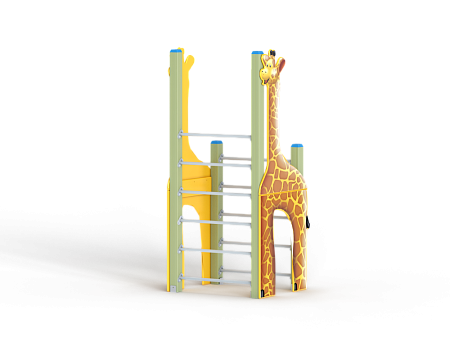Спортивный комплекс состоит из столбов с перекладинами между ними и фанерных стенок с ручной художественной росписью в виде жирафа.