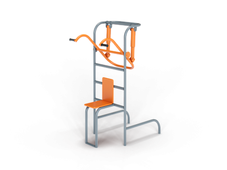 Тренажер представляет собой совокупность элемен-тов имитирующих: жим штанги сидя. Тренажер предназначен для тренировки мышц рук и спины, развивает координацию движений.