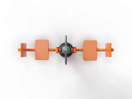 Тренажер рассчитан на тренировку одного или двух человек и позволяет выполнять силовое упражнение - жим ногами сидя. Оба пользователя садятся на сидения грудью к опорам друг напротив друга, и уперевшись ногами в ме-аллокаркас на центральной стойке производят жим ногами от себя, затем возвращаются в исходное положение.