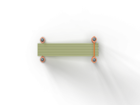 Лавочка состоит из четырех несущих столбов, трех перекладин и наклонной скамьи из бруса с зажимными хомутами.