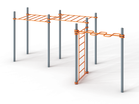 Воркаут состоит из восьми несущих столбов, рукохода-змейки, шведской стенки и двух рукоходов с зажимными хомутами.