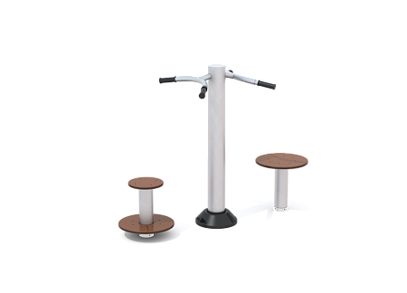 Тренажер уличный двухпозиционный, предназначен для тренировки людей с ограниченными возможностями. Тренажер способствует комплексному развитию мышц поясницы и спины, увеличения эластичности соединительных тканей, помогает улучшить координацию движений. Табуреты позволяют выполнять вращательные движения телом в сидячем положении, что в свою очередь позволяет развивать и восстанавливать моторику, координацию и мышц тела. Все металлические элементы тренажера изготовлены из нержавеющей стали.