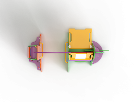 Комплекс состоит из театрального и художественного раздела. Театральный раздел состоит из стационарного модуля с ширмой для показа настольного и кукольного театра. Художественный раздел состоит из мольберта-стола, полочек, ящиков для хранения пособий, материалов и демонстрации продуктов творчества детей.