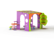 ДОУ 5.04 предназначен для организации занятий с детьми в летний период, с группой детей или по подгруппам. Скамейки внутри беседки позволяют удобно разместить подгруппу детей при организации бесед, чтения художественной литературы, занятий с педагогом-психологом. Беседка многофункциональна, в ней удачно сочетаются полки для размещения пособий, книг, иллюстраций, столы различных размеров для рисования, упражнений для развития мелкой моторики рук. Крыша беседки выполнена из специальных волнообразных панелей, расположенных на расстоянии друг от друга для естественного освещения и дополнительной вентиляции, для размещения пособий для дыхательной гимнастики. Сквозные отверстия разного диаметра и горизонтальные прорези носят не только декоративный характер, но могут использоваться для оформления выставок детских работ. Отсутствие стенок делает доступным для детей каждый из предметов.