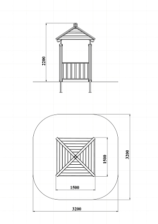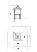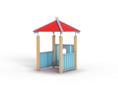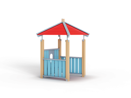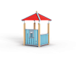 Домик состоит из башни с четырёхскатной крышей и трёх ограждений из бруса.