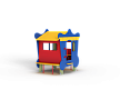 Домик стилизован в виде кареты, состоит из башни с крышей, ступенек, ограждений в виде деталей кареты, скамеек.