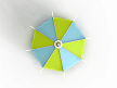 Домик состоит из восьмигранной башни с крышей в форме пагода, семи фанерных ограждений и скамеек.