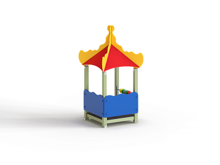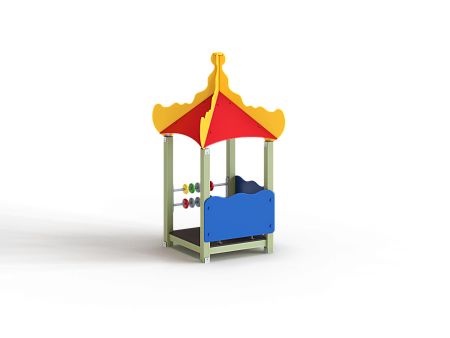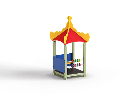 Домик состоит из башни с крышей, двух фанерных ограждений, скамейки и комплекта детских счет.