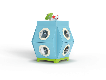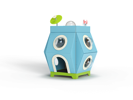 Домик состоит из башни с объёмными геометрическими ограждениями, на которых расположены пластиковые иллюминаторы и один вход. Крыша домика имеет один пластиковый иллюминатор и два декоративных элемента в виде антенны и радара. Внутри домика расположена скамейка и комплект детских счет.