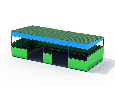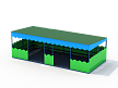 Беседка 9х4 метра состоит из оцинкованной крыши с фанерными фасадами, фанерными ограждениями, сборного металлокаркаса, ступени, закладных элементов, площадок и скамеек.