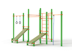 СО 7.031 Рукоход двойной, 5 турников и наклонная шведская стенка