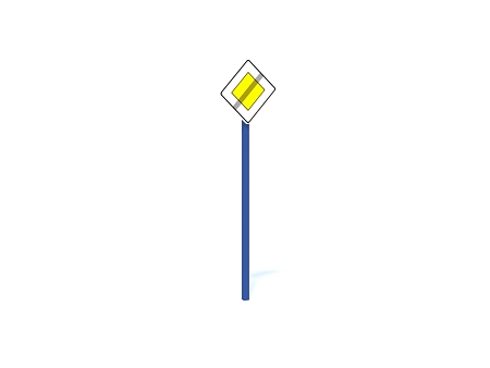 Знак конец главной дороги выполнен в виде металлической опоры и фанерного щита с ручной художественной росписью.