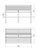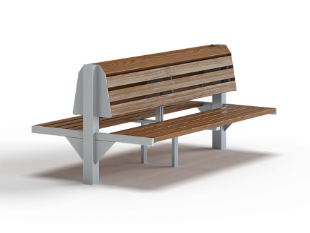 Двухсторонняя лавочка со спинкой (последний брус спинки расположен в позиции подголовника) изготовлена из металлических ножек и бруса из древесно-полимерного композита (ДПК)
