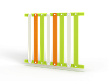 Ограждение длиной 2000 мм из деревянного бруса и фанерных разноцветных балясин