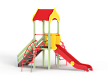 Детский игровой комплекс состоит из одной башни с крышей, лестницей, горкой, лианой и спиралью наклонной.