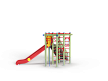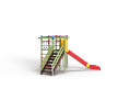 Детский игровой комплекс состоит из треугольной башни и гимнастического комплекса. На башне установлена лестница, горка, металлическое ограждение и шведская стенка. На гимнастическом ком-плексе установлены перекладины, перекладины усиленные, перекладина с канатом, перекладина с кольцами, шведская стенка и сетка полипропиленовая.