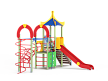 Детский игровой комплекс состоит из двух разновысоких башен. На одной из башен установлены крыша, лестница, горка, металлическое ограждение, на другой башне установлены альпинистская стенка, перекладина с канатом, ручки, спираль наклонная, ограждение с лазом. Одна из башен имеет продолжение в виде гимнастического комплекса который состоит из рукохода, шведской стенки, шеста-спирали и двух фанерных арок.