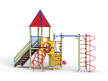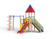 Детский игровой комплекс состоит из двух разновысоких башен. На одной из башен установлены крыша в форме пирамиды, лестница, горка, металлическое ограждение, на другой башне установлены альпинистская стенка, перекладина с канатом, спираль наклонная, ограждение с лазом. Одна из башен имеет продолжение в виде гимнастического комплекса,который состоит из рукохода, шведской стенки и шеста-спирали.