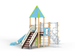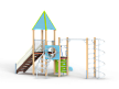 Детский игровой комплекс состоит из двух разновысоких башен. На одной из башен установлены крыша в форме пирамиды, лестница, горка, металлическое ограждение, на другой башне установлены альпинистская стенка, перекладина с канатом, спираль наклонная, ограждение с лазом. Одна из башен имеет продолжение в виде гимнастического комплекса,который состоит из рукохода, шведской стенки и шеста-спирали.