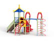 Детский игровой комплекс состоит из двух разновысоких башен. На одной из башен установлены крыша, лестница, горка-труба пластиковая, металлическое ограждение, на другой башне установлены альпинистская стенка, перекладина с канатом, ручки, спираль наклонная, ограждение с лазом. Одна из башен имеет продолжение в виде гимнастического комплекса который состоит из рукохода, шведской стенки, шеста-спирали и фанерных арок.