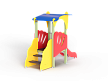 Детский игровой комплекс состоит из одной башни с горкой, фасонными фанерными крышей, лестницей и ограждениями.