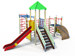 Детский игровой комплекс состоит из двух башен с крышами. На одной из башен установлена лестница, горка, балкон, шведская стенка. На другой башне установлены альпинистская стенка, перекладина с канатом, шест спираль, шведская стенка, ограждение с полукруглым вырезом, спираль наклонная и ручки вспомогательные. Башни соединены полипропиленовой сеткой и столбом