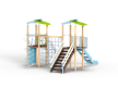 Детский игровой комплекс состоит из двух башен с крышами. На одной из башен установлены лестница, горка, балкон и шведская стенка. На другой башне установлены альпинистская стенка, перекладина с канатом, шест-спираль, шведская стенка, ручки, ограждение с круглым вырезом и спираль наклонная. Башни соединены полипропиленовой сеткой и столбом.