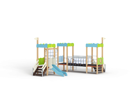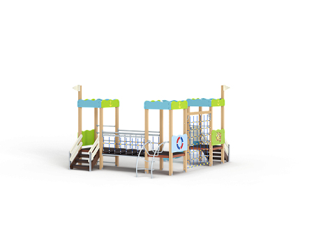 Детский игровой комплекс состоит из трёх башен. На первой башне установлена лестница, декоративные фанерные флажки, шведская стенка и фанерное ограждение с художественной оформленной поверхностью в морской тематике. На второй башне установлена лиана и фанерное ограждение с художественной оформленной поверхностью в морской тематике. На третьей башне установлена горка, лестница, декоративные фанерные флажки, шведская стенка и фанерное ограждение с художественной оформленной поверхностью в морской тематике. Третья и вторая башни соединены сеткой полипропиленовой, вторая и первая соединены подвесным мостом.