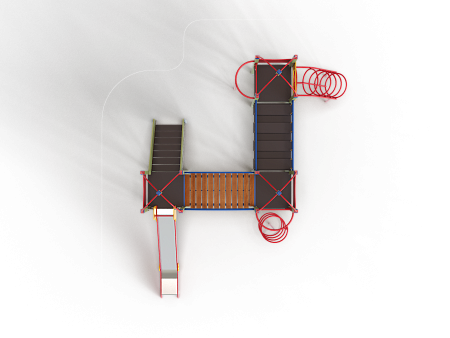 | Мост подвесной с страховочным мостом | 1шт. | ВВыполнен из металла окрашенного порошковой краской, ламинированной противоскользящей вла-гостойкой фанеры толщиной 18 мм и полипропиле-нового каната. . |