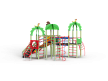 Детский игровой комплекс состоит из трех башен с крышами. На первой башне установлена лестница, спираль наклонная, ручки вспомогательные, ограждение с круглым лазом, вынесенная шведская стенка с рукоходом, перекладиной с гимнастическими кольцами и шестом спиралью. На второй башне установлена горка и фанерное ограждение. На третьей башне установлена лиана, ручки вспомогательные, ограждение фанерное и шведская стенка. Первая и вторая башни соединяются разновысоким мостом с металлическими перилами. Вторая и третья башни соединены подвесным качающимся мостом.