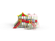 Детский игровой комплекс состоит из пяти башен. На одной башне установлена крыша в форме восьмигранной пагоды, на четырёх крыша металлическая со столбом. На восьмиграной башне установлена горка, лестница и фанерные ограждения. На башнях с металлической крышей установлены шест, шест спираль, шест с пластиковыми колесами, спираль, ограждение с круглым лазом, лиана, ручки вспомогательные, фанерные ограждения. Башни соединены двумя подвесными мостам и двумя мостами радиусными с металлическими перилами.